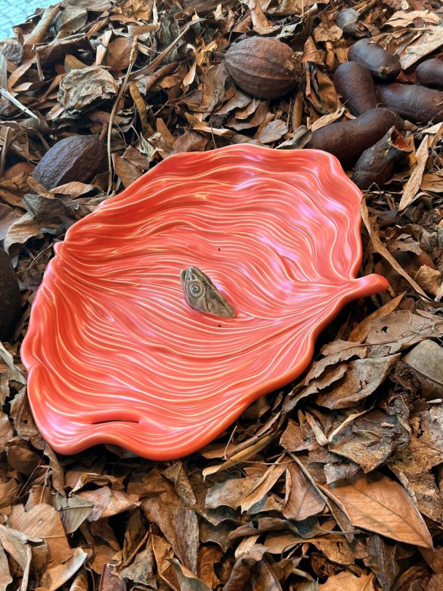 Convido a seguir para um outro prato, no sabor amargo que nos traz Luiz Zerbini, carioca dedicado à pintura e suas expansividades. A obra traz a figura de um pequeno peixe a se desesperar em água contaminada, a sufocar em lama tóxica. O artista nos relata em breve texto sobre o impacto ao presenciar o envenenamento do Rio Doce no desastre de Mariana em 2015. O Crime, de fato. “Ficou a imagem de um rio que era doce, agora na cor vermelha do desastre, com peixes mortos boiando na água suja. Era esse o crime do momento, o drama mais atual”, rememora Zerbini, trazendo à mostra o seu peixe em Rio Doce, de 2019. Triste, mas verdadeiro, pungente em belíssima faiança esmaltada. A ele dedico esse texto, dada a admiração pela sua trajetória e seus mais recentes movimentos em direção a um engajamento socioambiental profundo.