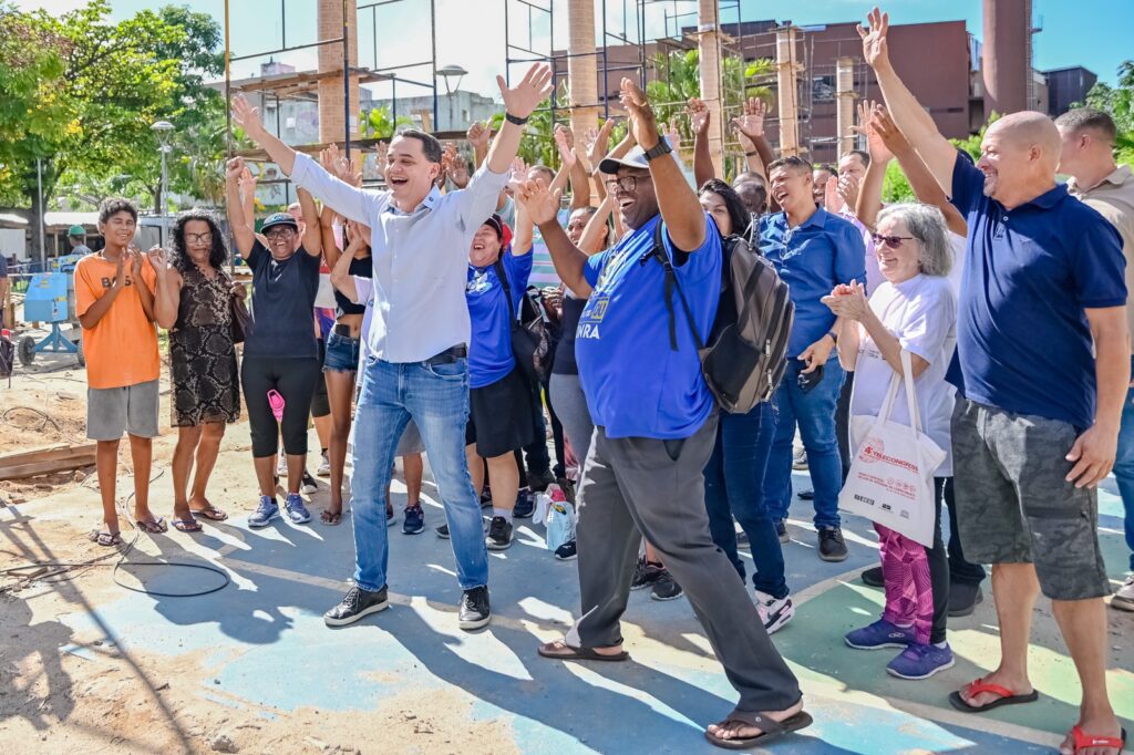 Ao lado do secretário de Obras, Gustavo Perin, do secretário de Esportes, Rodrigo Ronchi, lideranças comunitárias e alunas do Serviço de Orientação ao Exercício (SOE), o prefeito Lorenzo Pazolini percorreu o espaço da obra e falou com alegria e satisfação sobre as entregas já realizadas na mesma praça, como o campo de areia, o campo de grama sintética e o parque kids.
